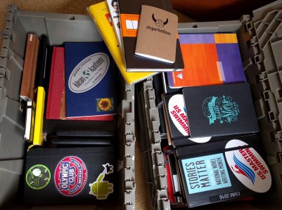 Don’t believe me? Here’s a photo of my 2 boxes of archived notebooks. The box on the right are old planners and work notebooks. The box on the left are old journals. The ones balanced on top in the middle are some of my stash of blank notebooks.