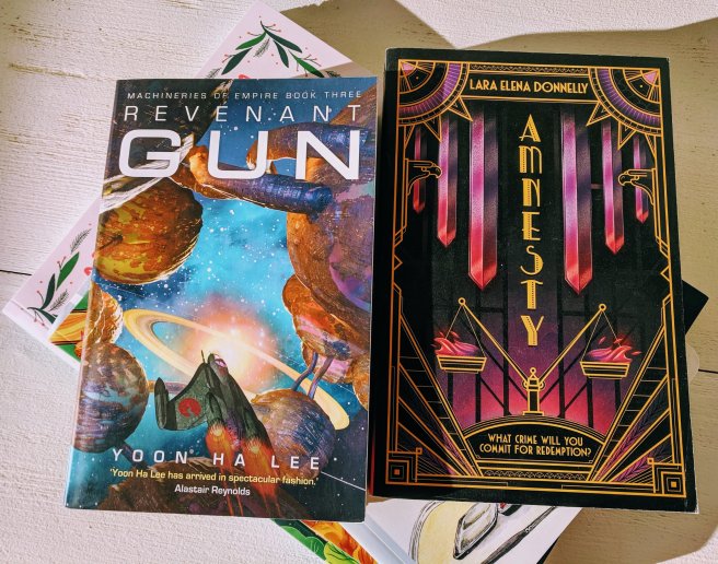 Speaking of excellent cover art, did you notice Armistice in that stack? Book two in the Amberlough series released on my birthday, and it’s calling to me. I need to start this soon so I can find out what happens next. But…the thing that’s really calling to me is book two in Elizabeth Moon’s military space opera series, Marque and Reprisal. It’s been a while since I read Trading in Danger, but I really liked it. This sub-genre is my reader catnip. This series is a little old (like me) but, I found out that she’s written more books in this world. So, I need to get reading.