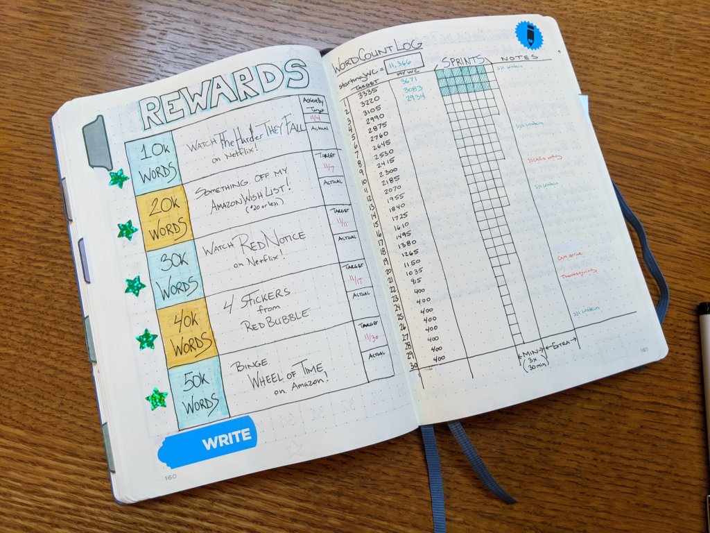 I also created a rewards plan, and a more detailed word count log on a separate spread.