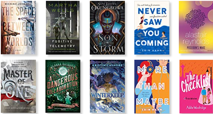 1. Best book you’ve read so far in 2021:The Space Between Worlds by Micaiah Johnson 2. Best sequel you’ve read so far in 2021:Fugitive Telemetry by Martha Wells (The Murderbot Diaries #6) 3. New release you haven’t read yet, but want to:Son of the Storm by Suyi Davies Okungbowa 4. Most anticipated release for the second half of the year:Never Saw You Coming by Erin Hahn 5. Biggest disappointment:Poseidon’s Wake by Alastair Reynolds 6. Biggest surprise:Master of One by Jaida Jones and Danielle Bennett 7. Favorite new (or new to you) author: Micaiah Johnson 8. Newest fictional crush: Stoker from the Veronica Speedwell series 9. Newest favorite character: the telepathic fox from Winterkeep by Kirstin Cashore 10. Book that made you cry:More Than Maybe by Erin Hahn 11. Book that made you happy:The Checklist by Addie Woolridge 12. Most beautiful book you’ve bought so far this year (or received): I am still waiting on my Fae Crate special edition of Son of the Storm, and I expect that is going to be pretty fantastic. However, since I haven’t received it yet, I’m going to have to go with the special edition hardcover I purchased of The Space Between Worlds (see photo below). 13. What books do you need to read by the end of the year? I haven’t made much progress on my “21 for 2021” TBR, yet (3/21 books read). So I should probably make an effort to read a few more of those before the end of the year…