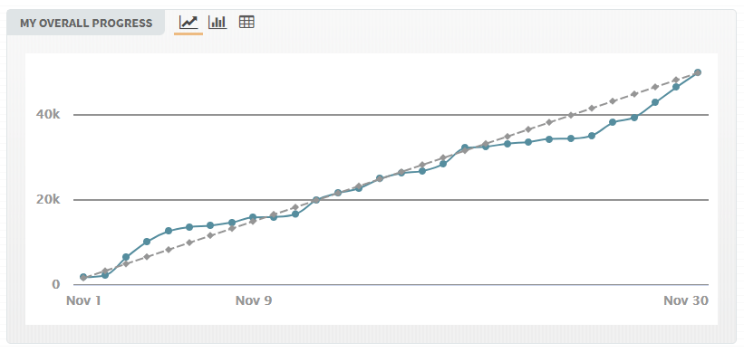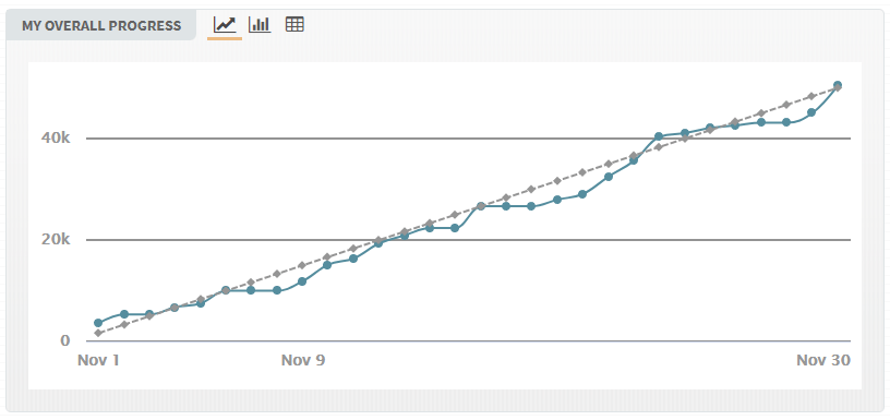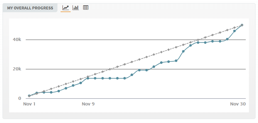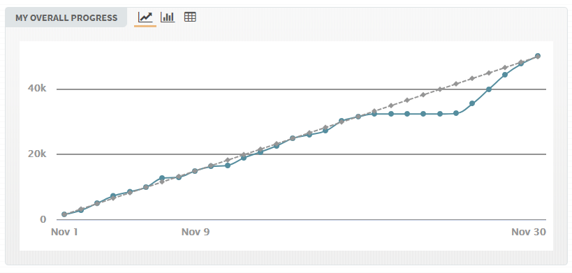 To illustrate that point further, par has you hitting 30k words on the 18th of November. Here’s when I hit 30k in previous NaNoWriMos: